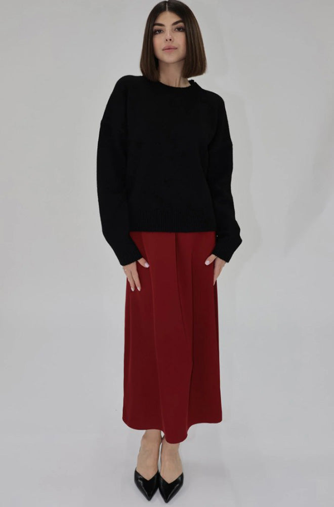Bring effortless sophistication to your wardrobe with this stunning deep red satin midi skirt. Designed with a smooth, flowing silhouette, it drapes beautifully with every step, creating an elegant and feminine look. The rich red hue adds a bold, timeless touch that transitions seamlessly from day to night.