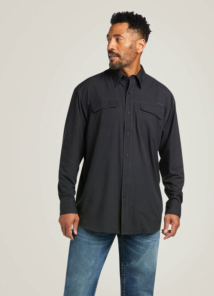 This versatile long-sleeve button-down delivers lightweight comfort with a clean, modern look, featuring dual front pockets, a smooth performance fabric, and a relaxed fit that moves with you. Perfect for workdays, weekends, and everything in between.