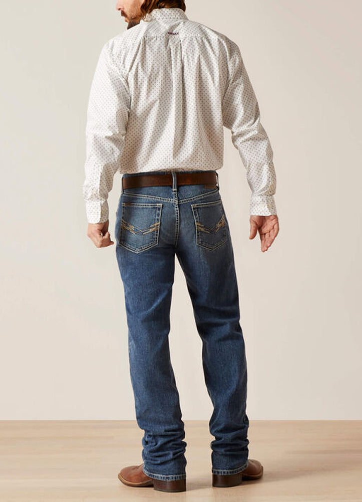 Stay in fashion with these Truman boot cut jeans that fit effortlessly with any boots that you have. Each pocket includes an arrow designed pattern stitched in rustic and brown colorings to help compliment any button up or patterned shirt that you pair with them.