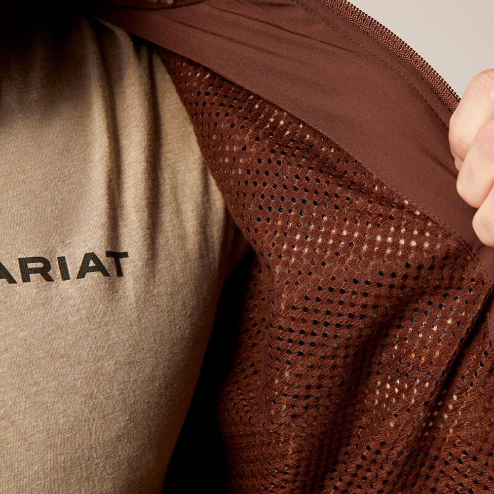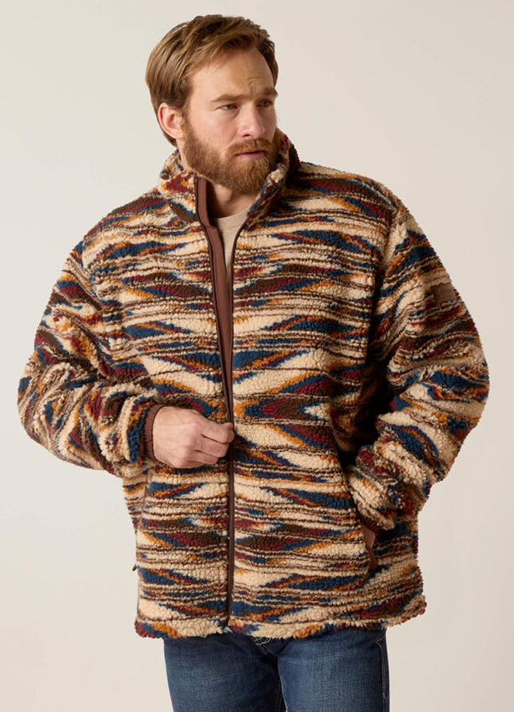 Stay warm this season with this Chamiya jacket by Ariat. Designed in a multi colored fleece material with a brown coco colored interior. Features pockets and front zip with a high collar to help keep the cool air out.
