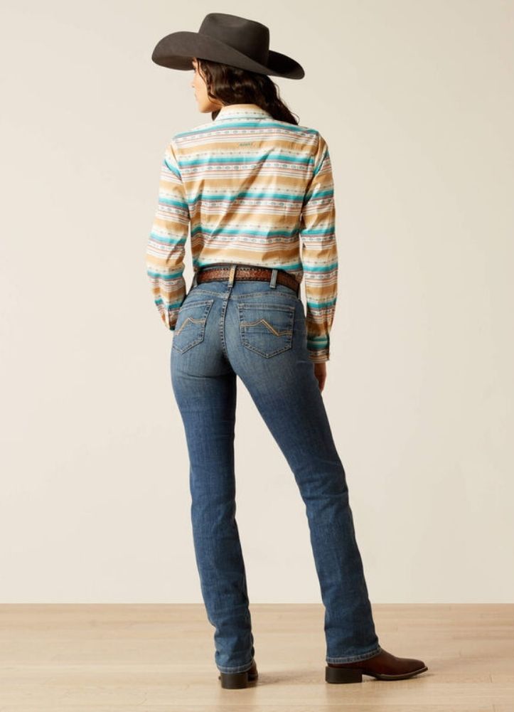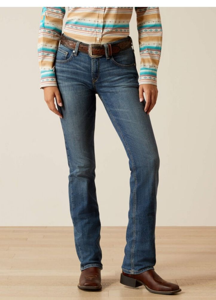 This pair of jeans have a straight leg, with a mid rise. They are a solid blue jean, with a medium wash. Pair these with your favorite boots, and hit the town! These can be dresses up or down.