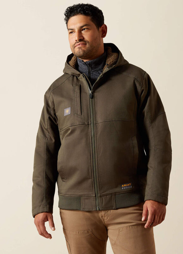 Built for tough jobs and colder days stay warm and protected with this Ariat work jacket, featuring a durable shell, sherpa lining, full zip closure, and a hood for dependable warmth.