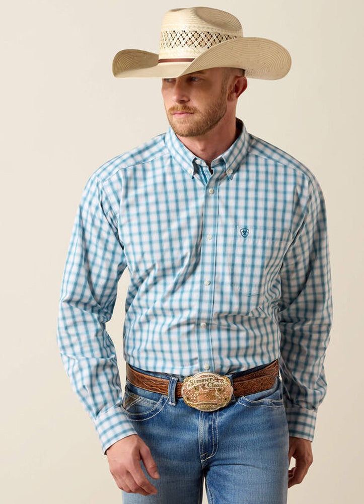 Fresh, classic western style made for everyday wear. This long-sleeve button-down features a crisp check pattern, structured collar, and a comfortable fit designed to move with you. Finished with clean button details and subtle logo branding, it's perfect for long workdays, casual outings, or pairing with denim for a polished, laid-back western look.