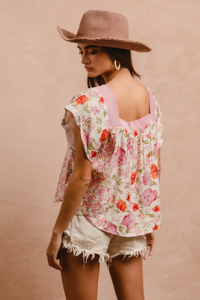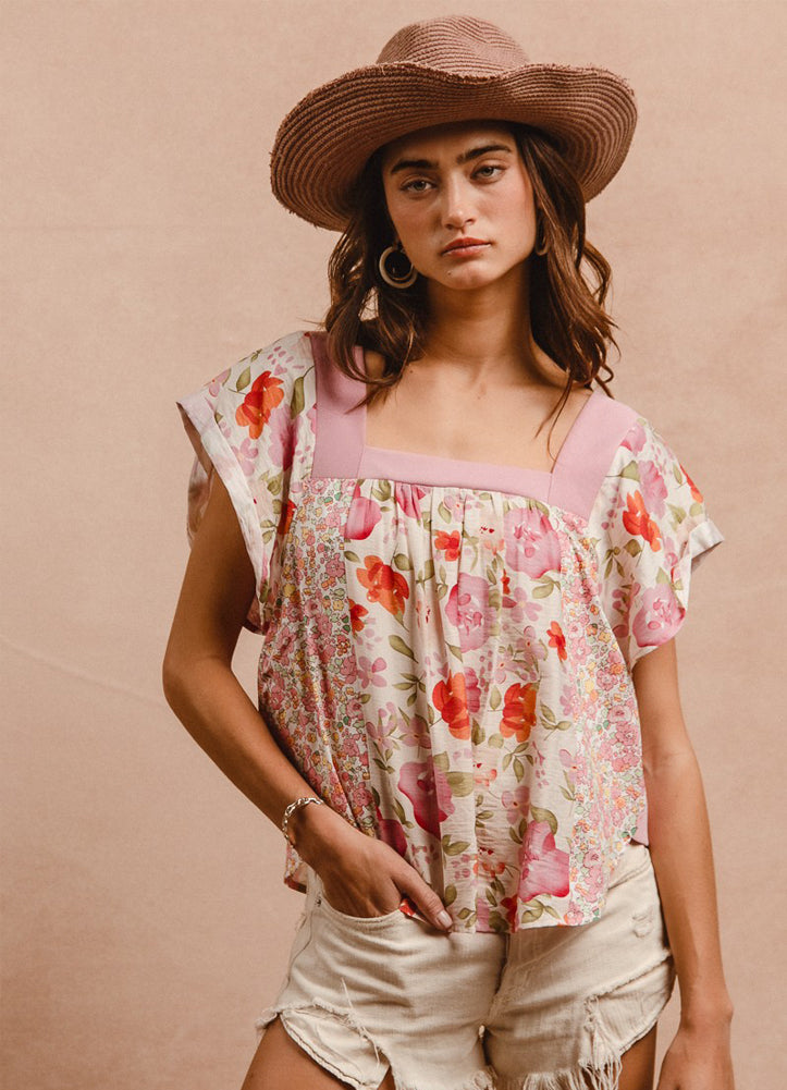 Floral Print Square Neck Top in Blush Combo by BiBi