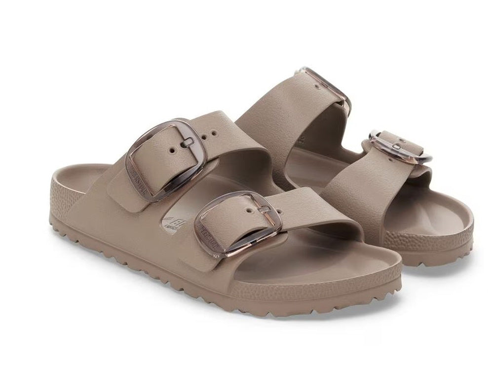 Slip into effortless comfort. With this classic Birkenstock Arizona sandal in a modern taupe hue. Featuring durable EVA construction and oversized buckles, it's your go-to for pool days, errands, or laid-back lounging.