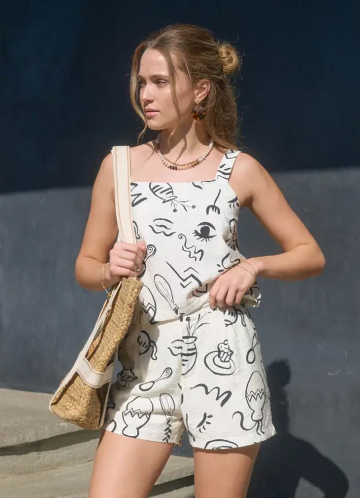 Doodle Print HW Mini Shorts in Natural by Blu Pepper