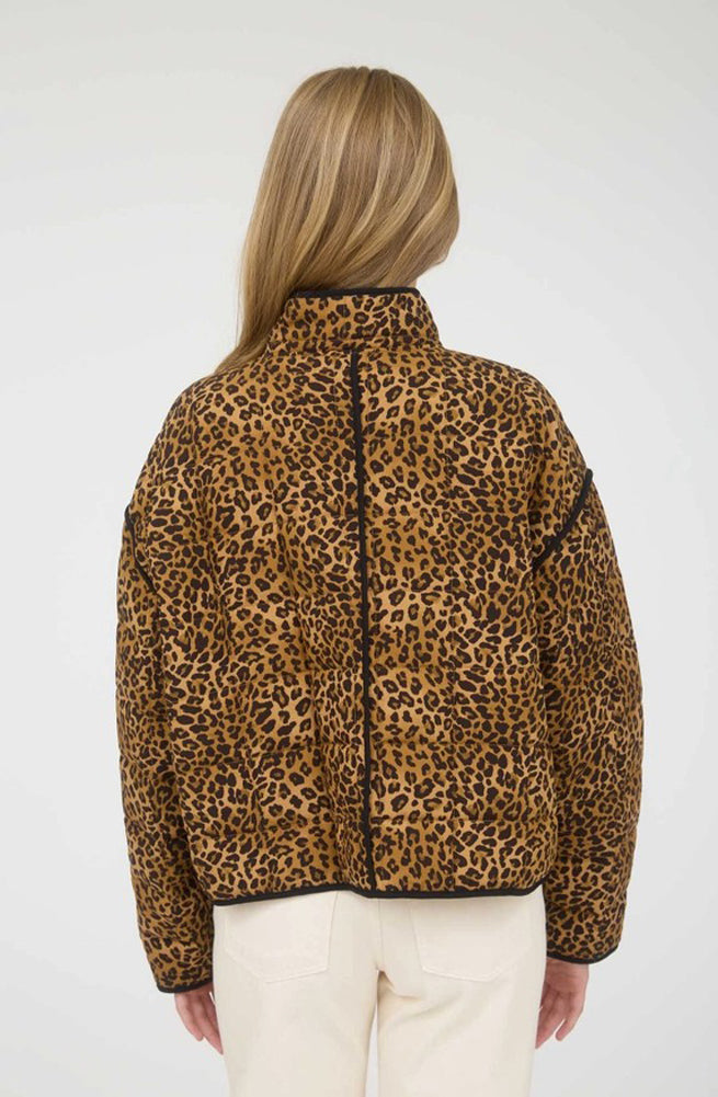Quilted Leopard Button Down Puffer Jacket in Brown Multi by Blu Pepper