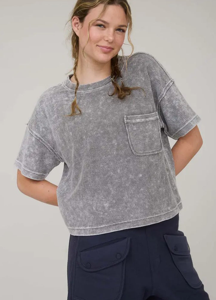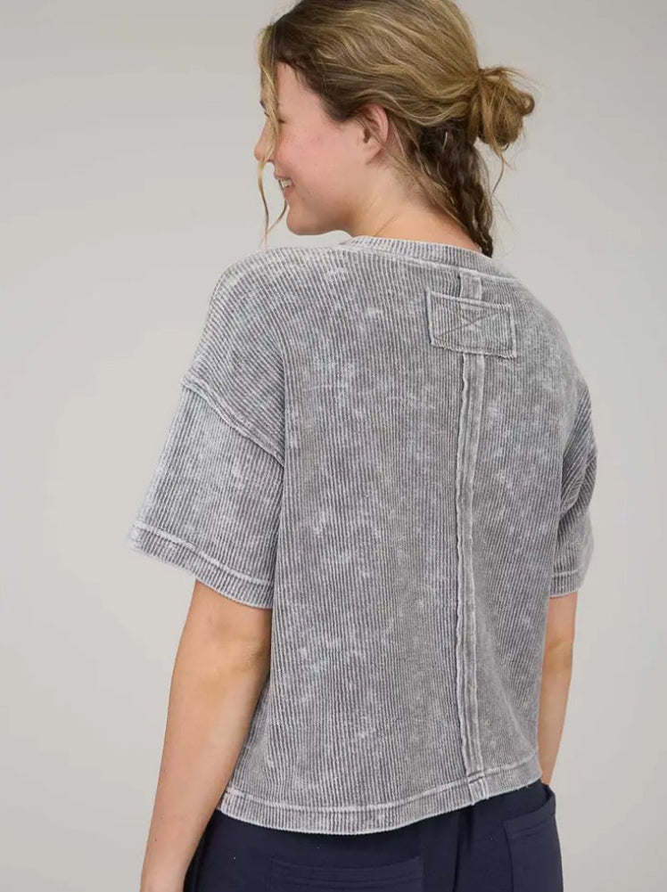 Washed Ribbed SS Tee in Charcoal by Blu Pepper