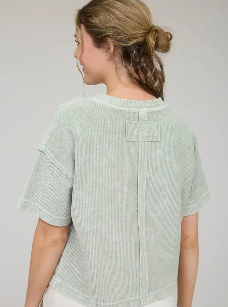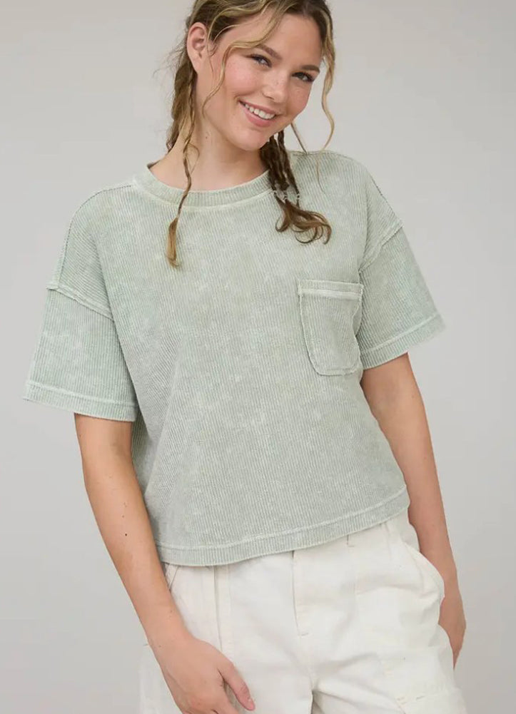 Washed Ribbed SS Tee in Light Olive by Blu Pepper
