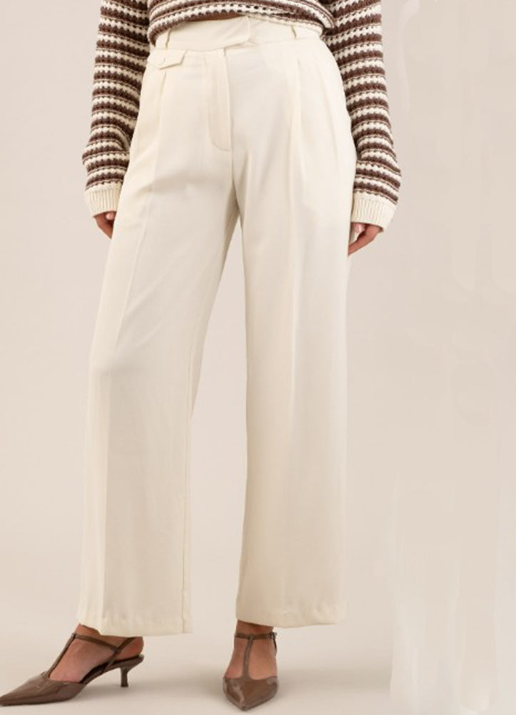 HW Wide Leg Pleated Dress Pants in Ecru by Blu Pepper