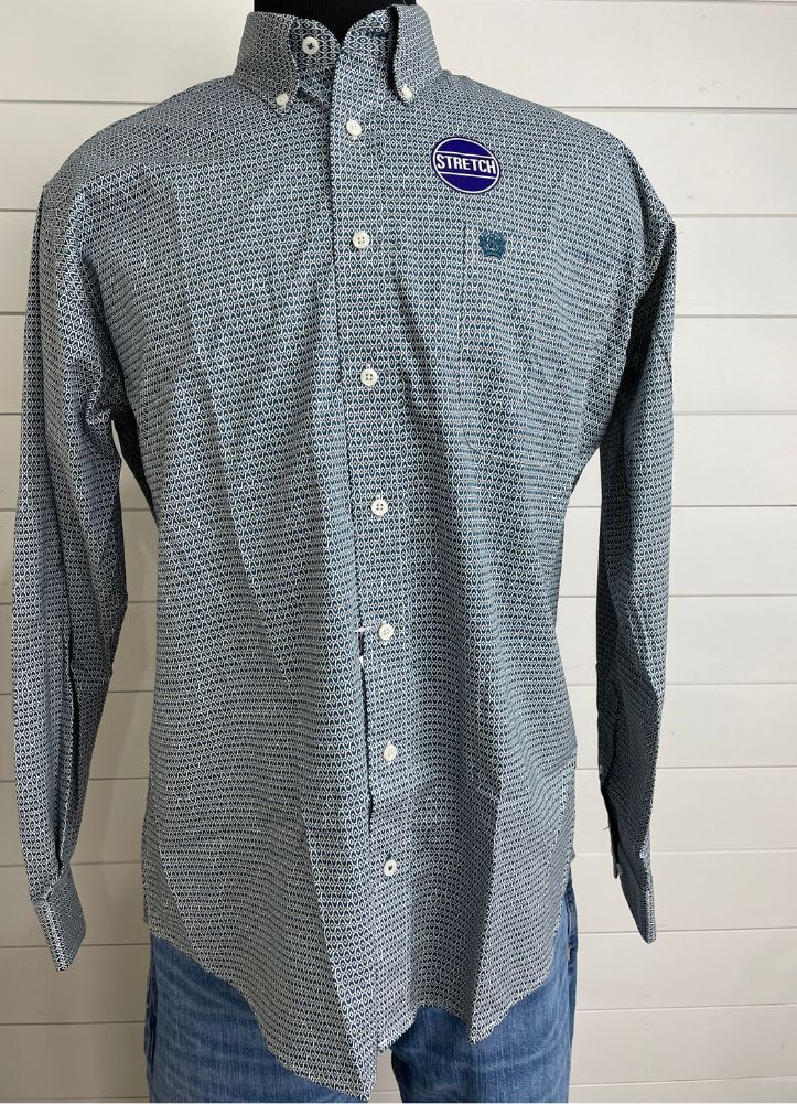 LS Print Button Up in Teal by Cinch