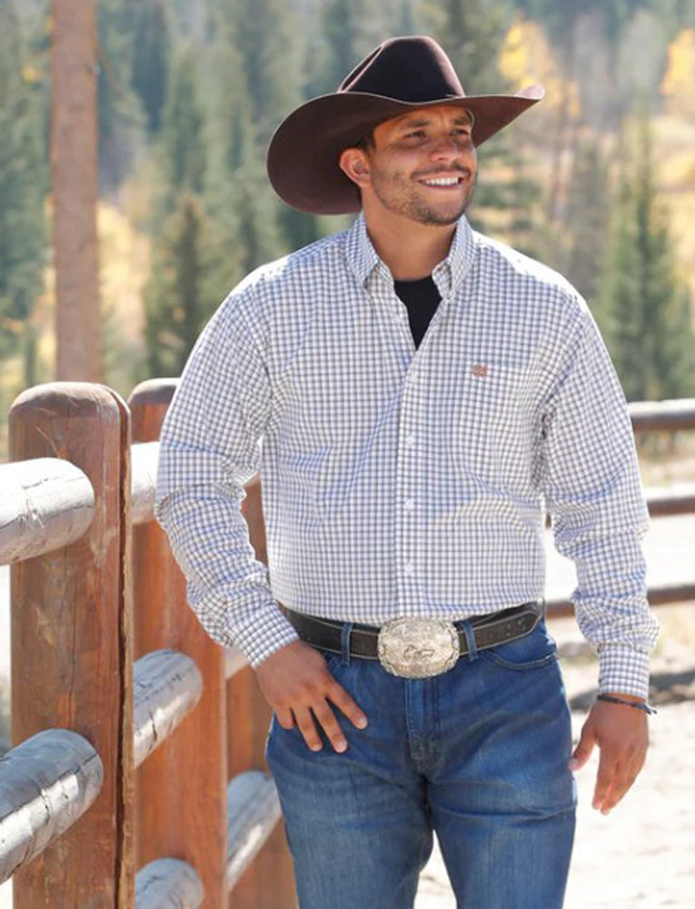 Classic checkered button-down shirt with a tailored fit, featuring long sleeves, a chest logo, and crisp style—perfect for casual or semi-formal wear.
