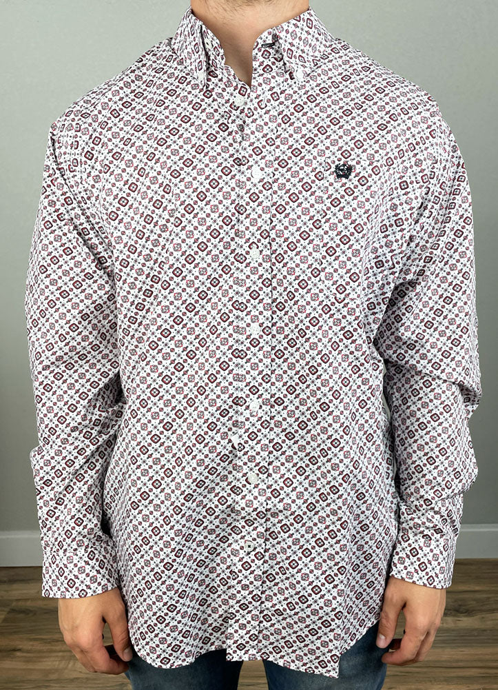 LS Print Button Up in White by Cinch