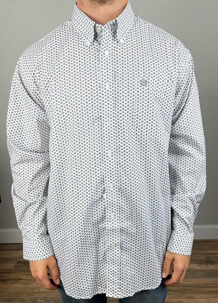 LS Print Button Up in White by Cinch