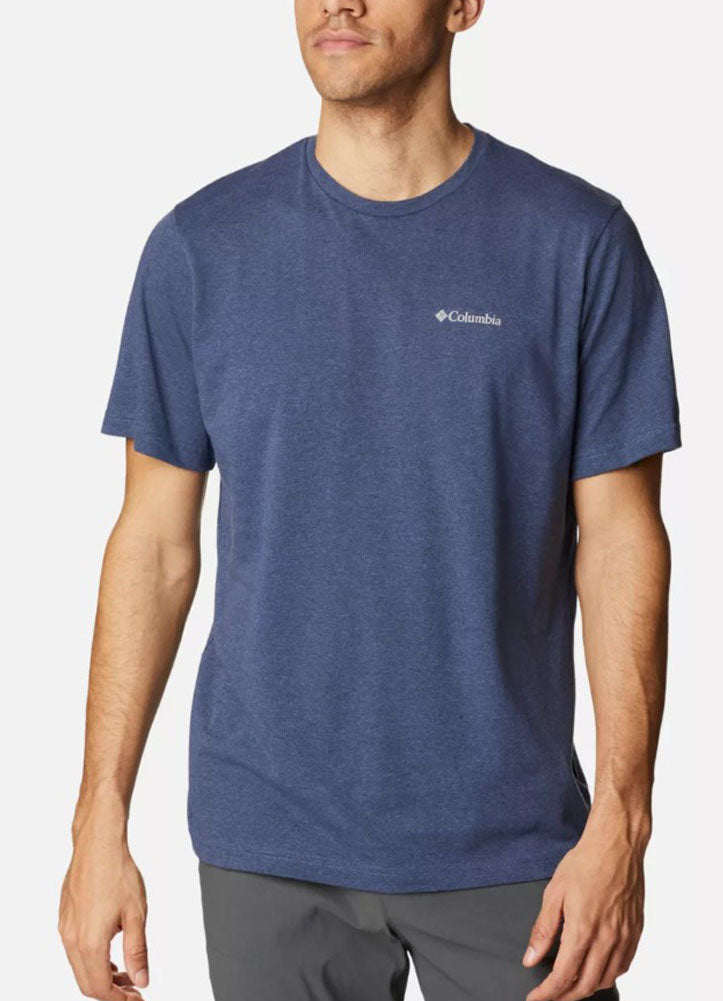 Enjoy all-day comfort with the Columbia Men's Short-Sleeve T-Shirt in navy blue, designed with lightweight, breathable fabric that's perfect for outdoor activities, casual wear, and versatile everyday style.