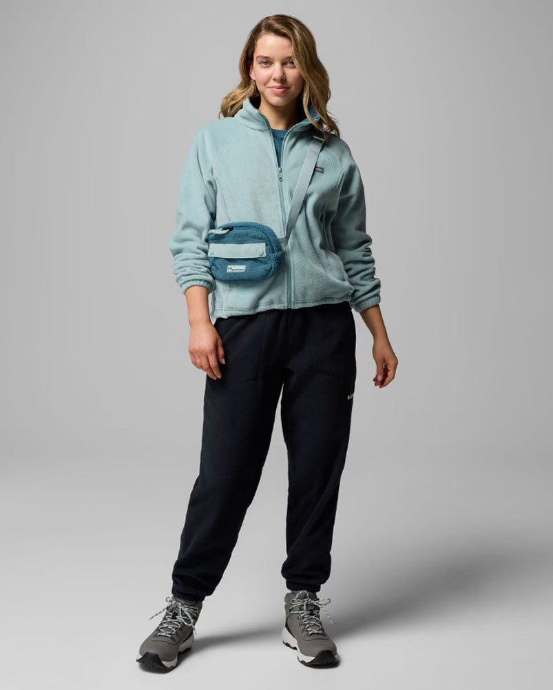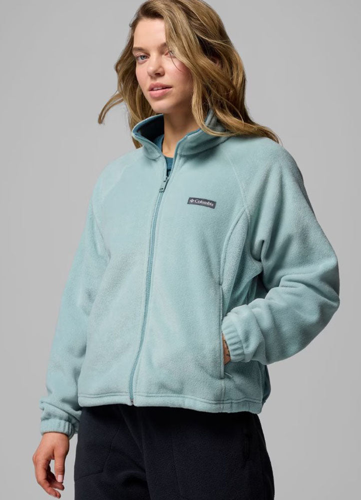 Stay warm and effortlessly stylish in this soft, light-blue Columbia fleece jacket. Designed with a full zip front, cozy high collar, and relaxed fit, it's the perfect layer for chilly days, outdoor adventures, or casual everyday wear. Comfortable, lightweight, and timeless your new go-to for all things cozy.