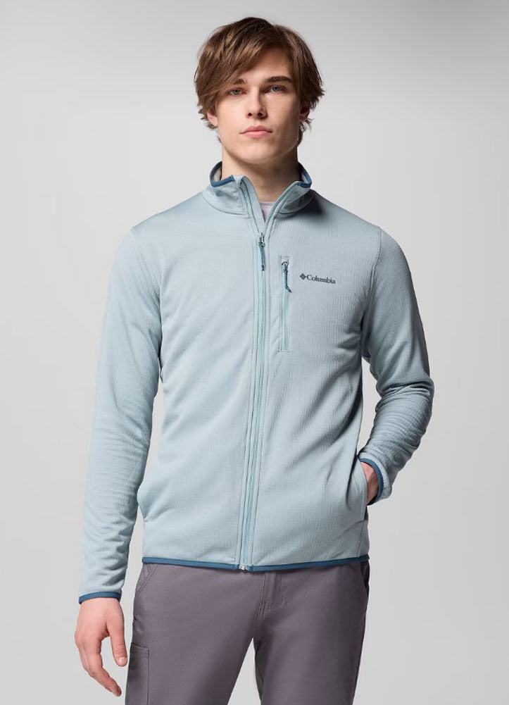 Stay warm without the bulk in this lightweight Columbia full-zip jacket, designed in a soft pastel blue that's perfect for everyday layering. With a streamlined fit, secure zip chest pocket, and breathable fabric that keeps you comfortable on any adventure, this versatile piece transitions effortlessly from outdoor treks to casual daily wear.