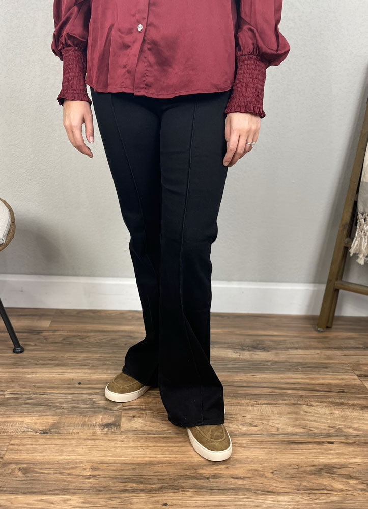 Elevate your wardrobe with this stunning wine-colored satin blouse, featuring a smooth, glossy finish, elegant button-front design, and beautifully smocked cuffs that add a touch of feminine sophistication to any outfit.