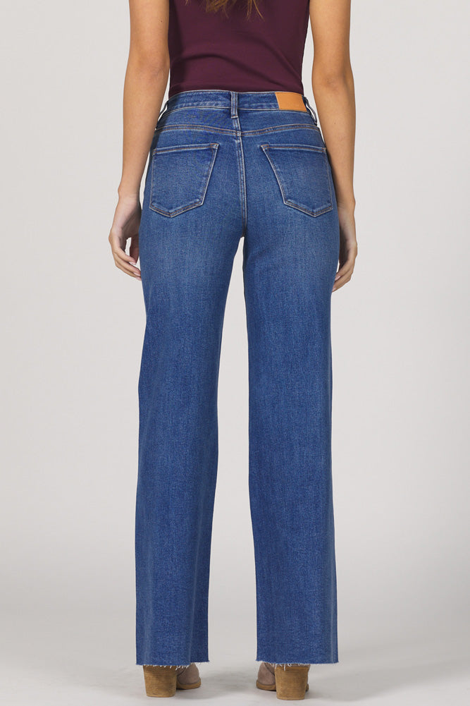Classic denim with a fresh, flattering twist. The Fiona Wide Leg Jeans in Mystic Ridge offer a high-rise silhouette, clean finish, and raw hem that's made for effortless style.