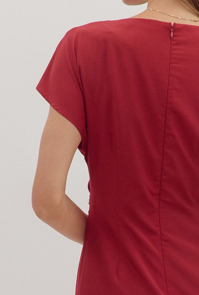 Solid SS Midi Dress with Ring Gathering Detail in Scarlet by Entro