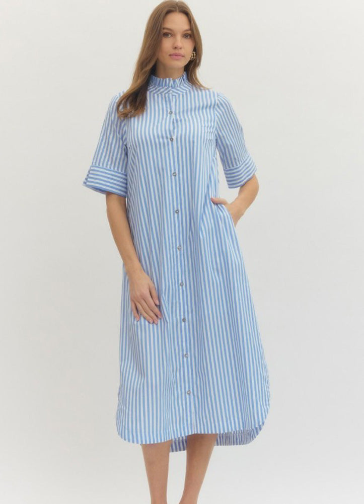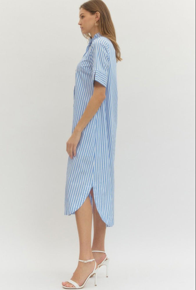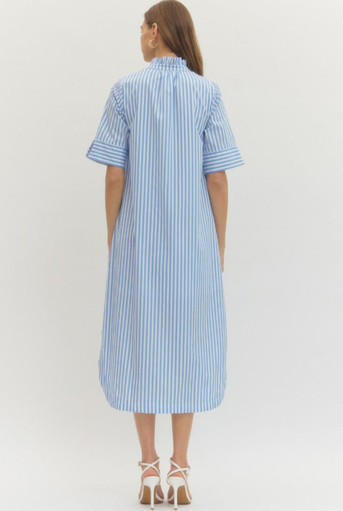 Striped Button Front Midi Dress in Light Blue by Entro