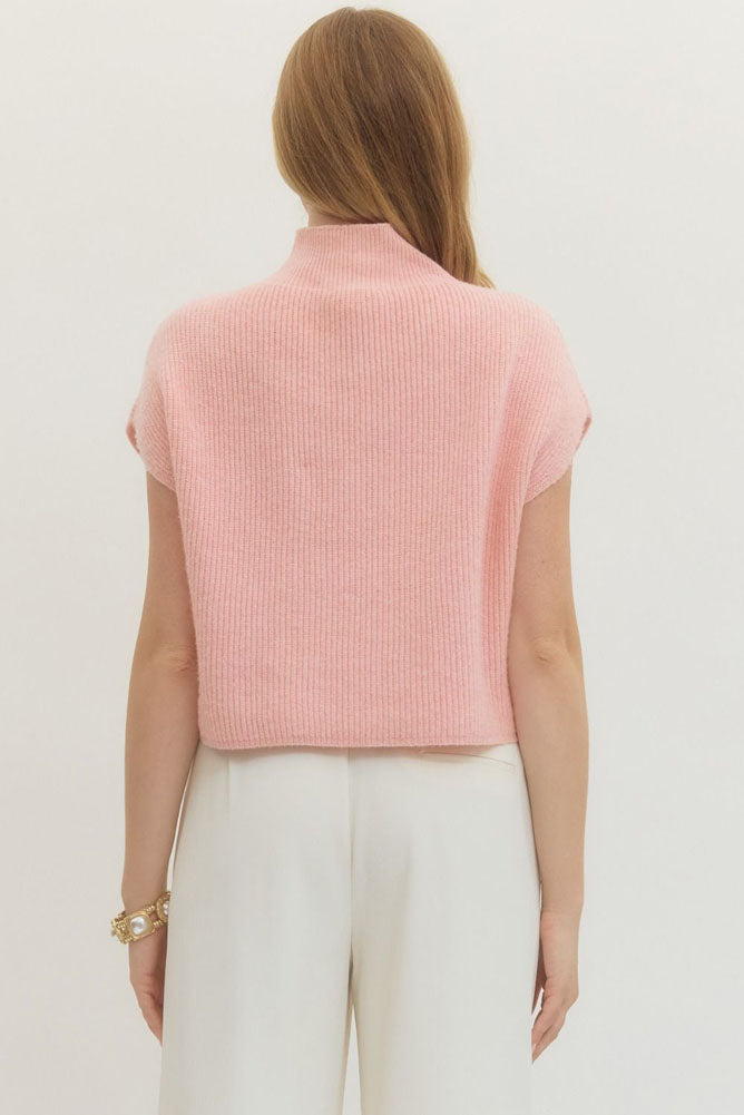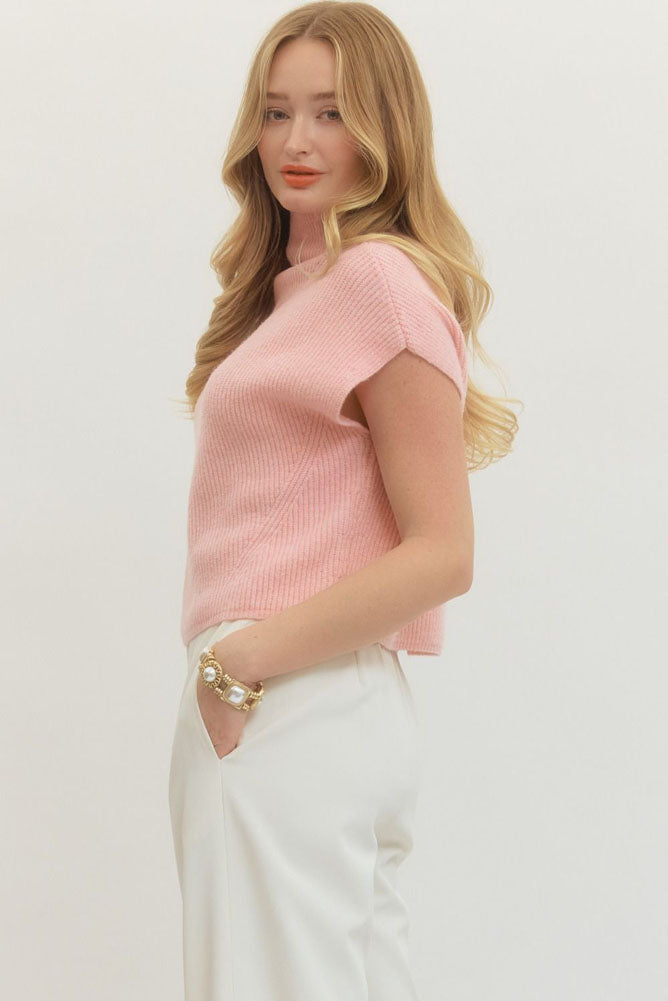 Solid Cap Sleeve Mock Neck Sweater in Light Pink by Entro