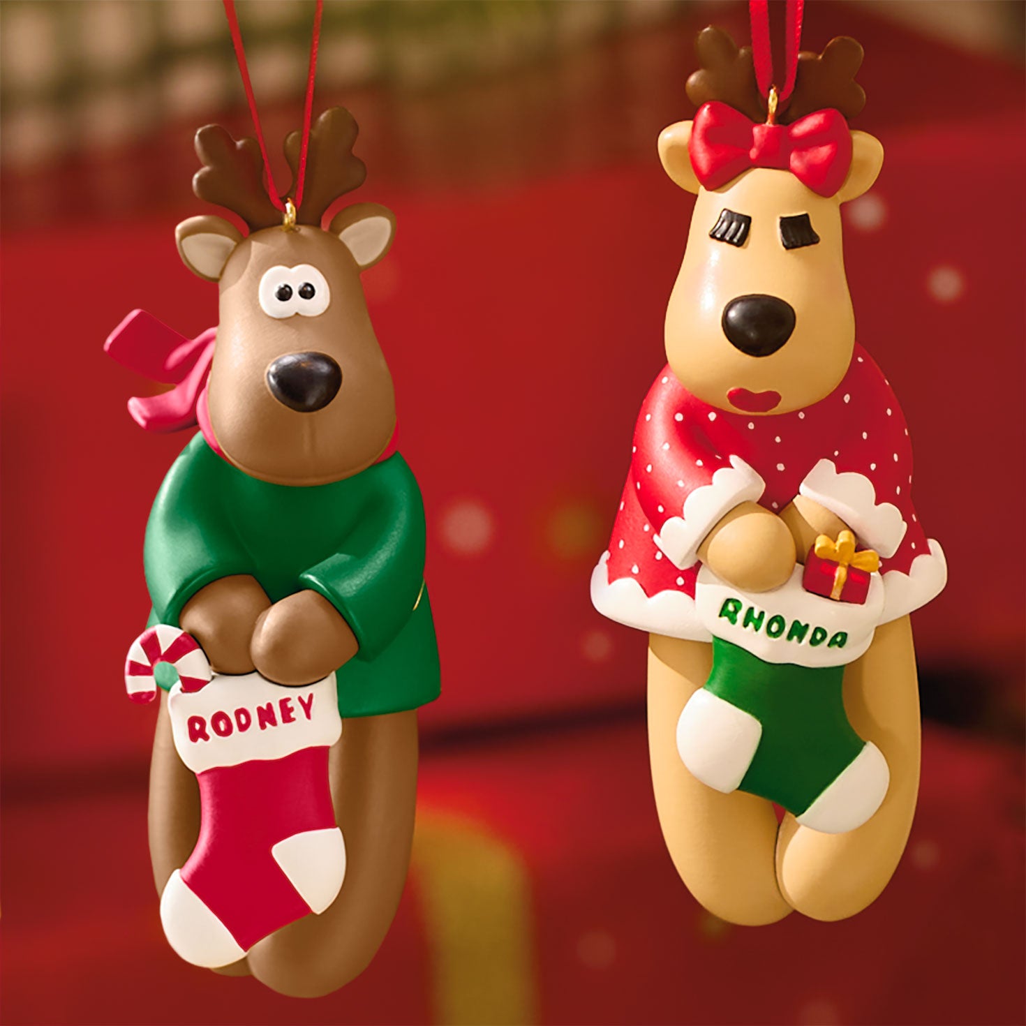 Which fun reindeer will you add to your Christmas tree this year? Bring a touch of nostalgia—and surprise—to your holidays with Rodney or Rhonda the reindeer. One of these charming Christmas tree ornament designs comes ''blind'' packaged in a sealed box, so it's a surprise! You'll have to wait until you open the box to find out if you received Rodney, dressed in a green shirt and red scarf, or the rare version, Rhonda, in a festive red and white polka dot outfit (one ornament per box).