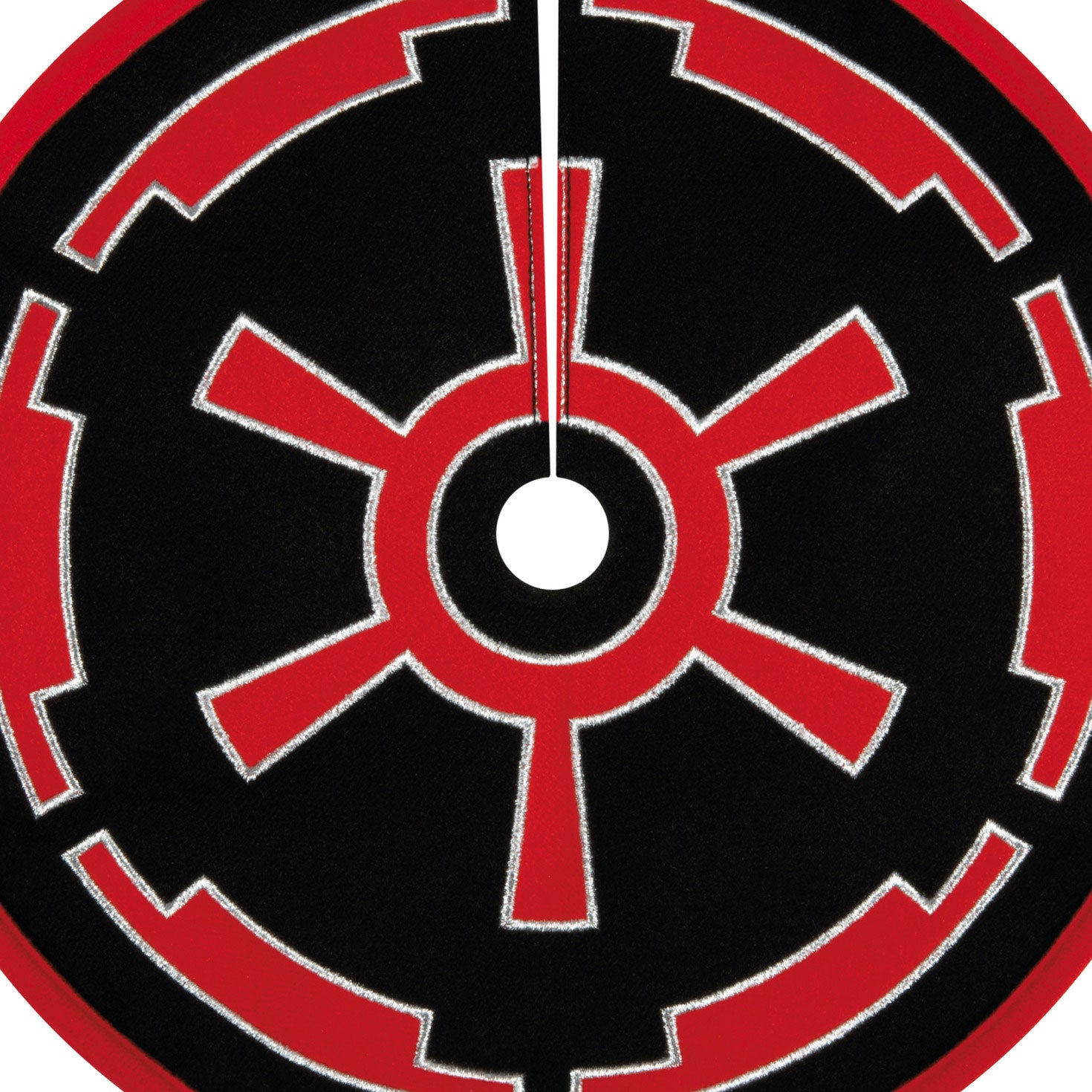 Celebrate the season in Dark Side style as you show your support for the Galactic Empire. Featuring a bold design of the iconic Imperial cog insignia in red and black fabric with shiny silver embroidered accents, this miniature Christmas tree skirt is perfect for a Star Wars tabletop tree. Makes a great complement to our Star Wars ShowToppers Mini Tree Topper.