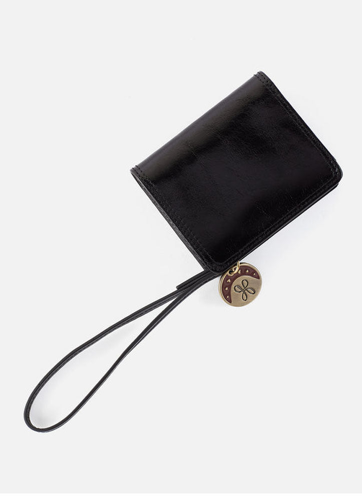 Sleek, compact, and effortlessly polished. This black glossy wristlet wallet is the perfect grab and go accessory for days when you want to travel light without sacrificing style. Crafted with a smooth, high shine faux leather finish, it brings a modern, elevated look that pairs seamlessly with both casual and dressy outfits.