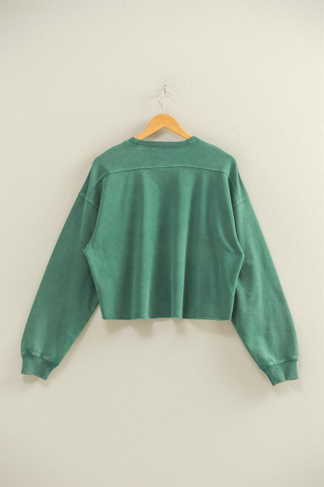 Effortlessly cool and ultra-comfy, this washed black cropped sweatshirt brings a laid-back vibe to your everyday look. Featuring a crew neckline, dropped shoulders, and a raw-edge hem, it's the perfect layering piece for high-waisted leggings or jeans. The soft, vintage-style wash gives it a worn-in feel you'll love to lounge or head out in.
