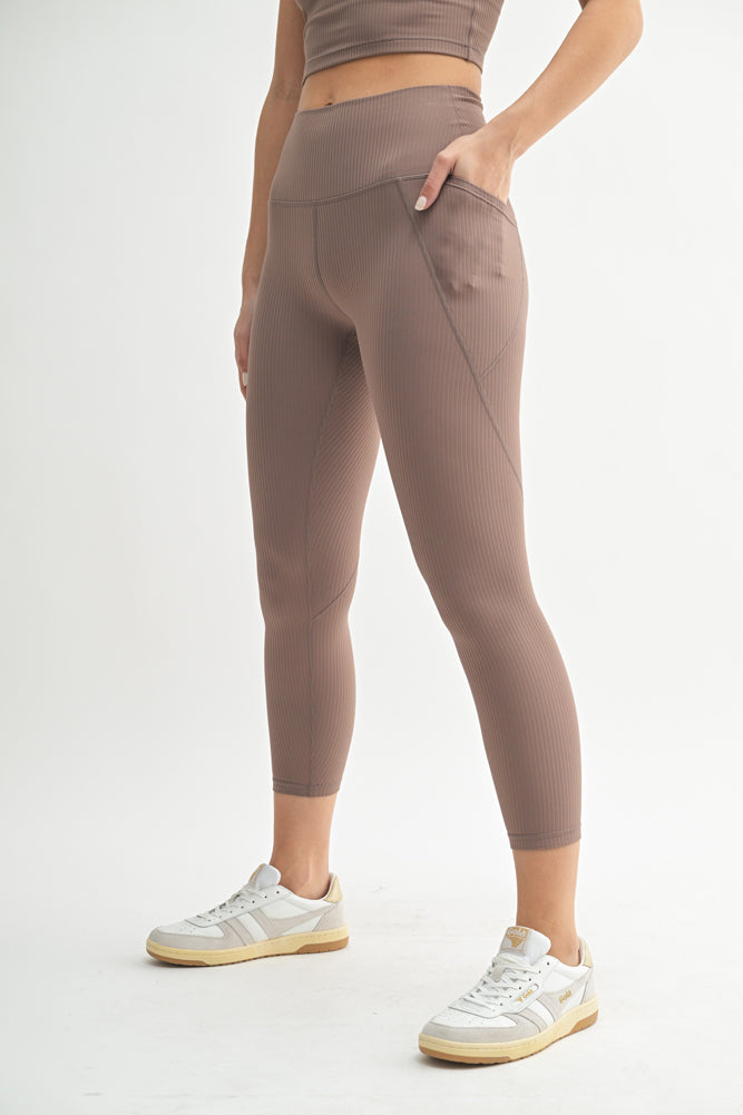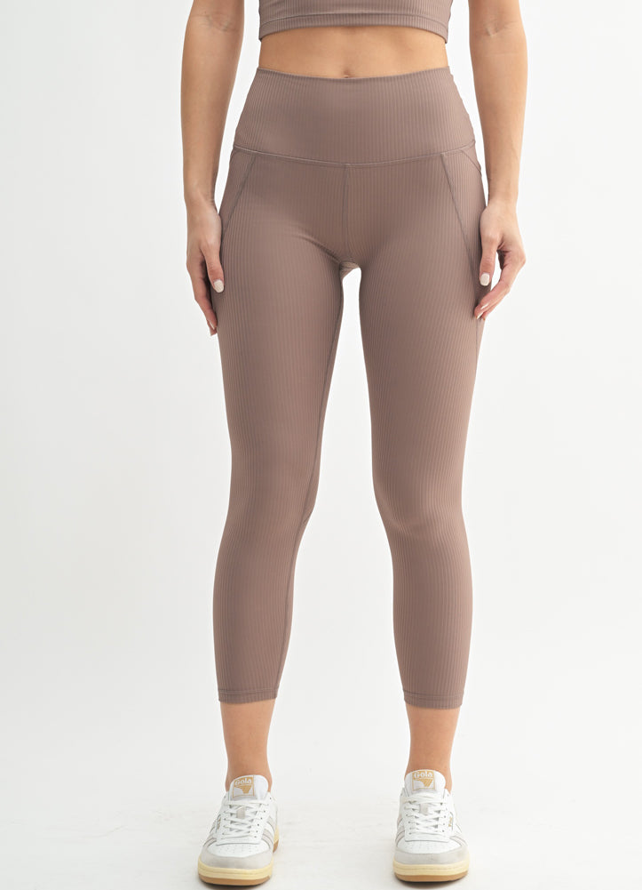 Soft Ribbed 7/8 HW Leggings in Deep Taupe by Mono b