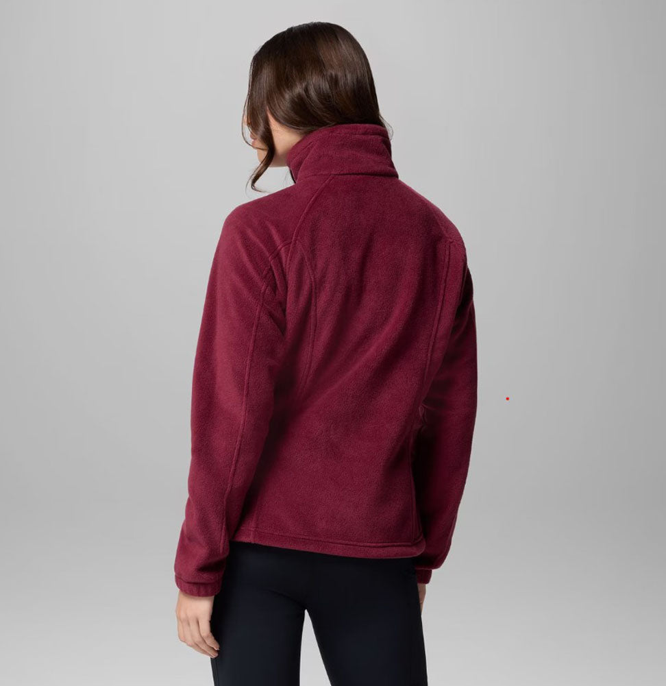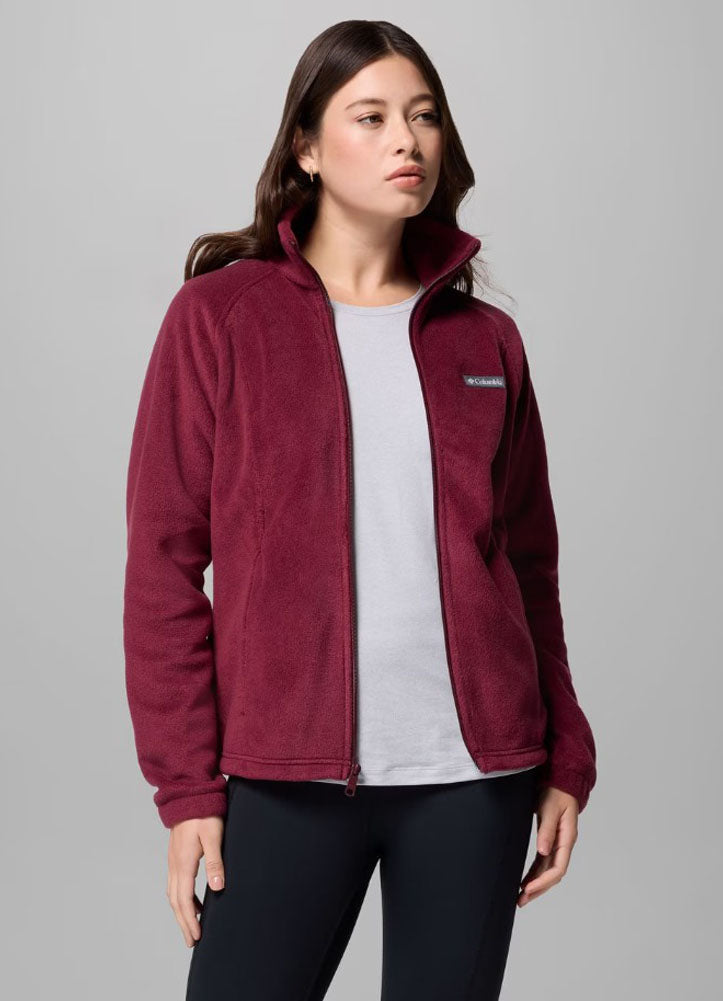 This cozy full-zip fleece jacket delivers effortless warmth and everyday versatility, featuring a rich burgundy hue, soft fabric, and a high collar for added comfort perfect for layering on chilly days whether you're heading outdoors or relaxing in casual style.