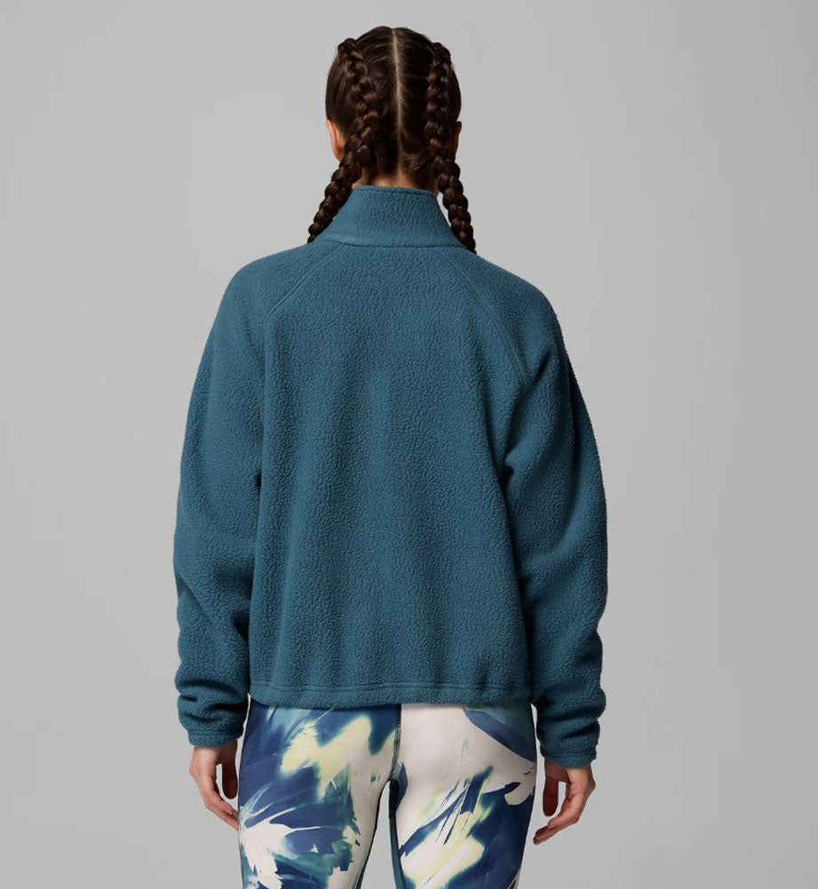 This cozy teal fleece jacket offers a relaxed, outdoors-ready look with its soft texture, high collar, and versatile snap-button front perfect for staying warm and stylish during cool-weather adventures or everyday casual wear.