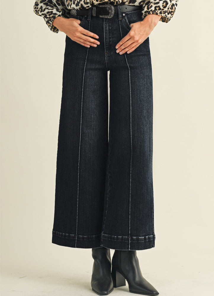 Stretch HR Pintuck Wide Leg Jeans in Black by Anniewear