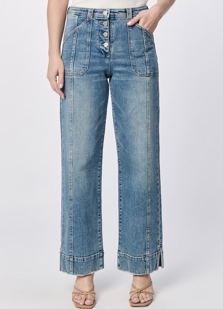 Elevate your denim game with thHolly Wide Leg Jeans from Dear John. With exposed button fly, front seam details, and raw edge cuffs, these jeans deliver vintage vibes with a modern twist.
