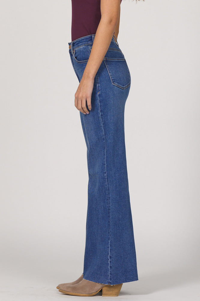 Classic denim with a fresh, flattering twist. The Fiona Wide Leg Jeans in Mystic Ridge offer a high-rise silhouette, clean finish, and raw hem that's made for effortless style.