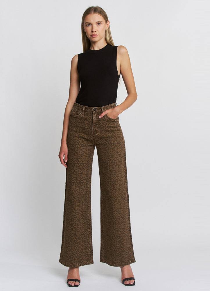 Super HR Wide Leg Leopard Jeans in Brown Derby by Mica Denim