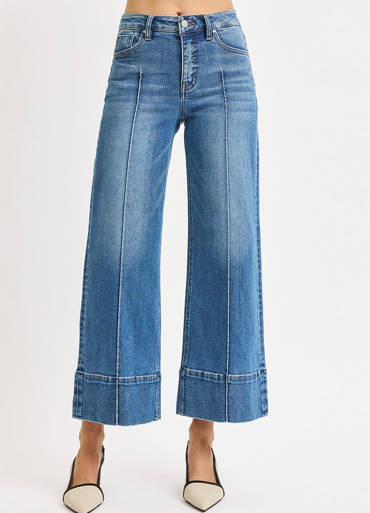 TC MR Crop Wide Pintuck Front Jeans by Risen