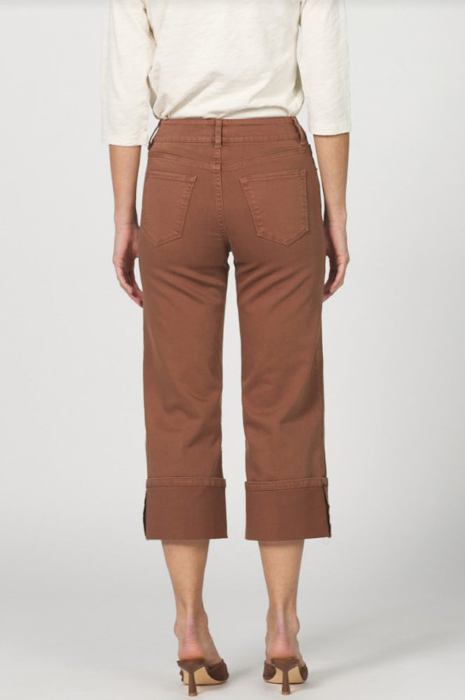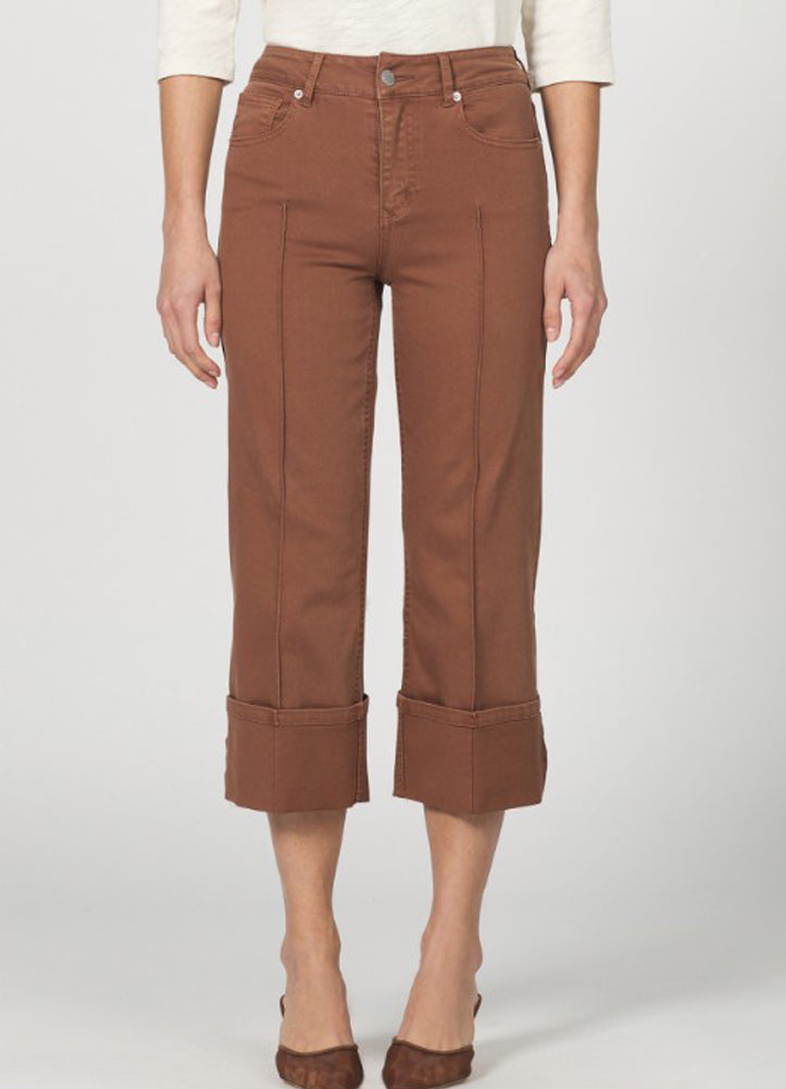 Elevate your everyday style with these chic cropped brown pants, featuring a flattering high-rise fit, wide cuffed hems, and versatile design that transitions seamlessly from casual outings to polished looks.