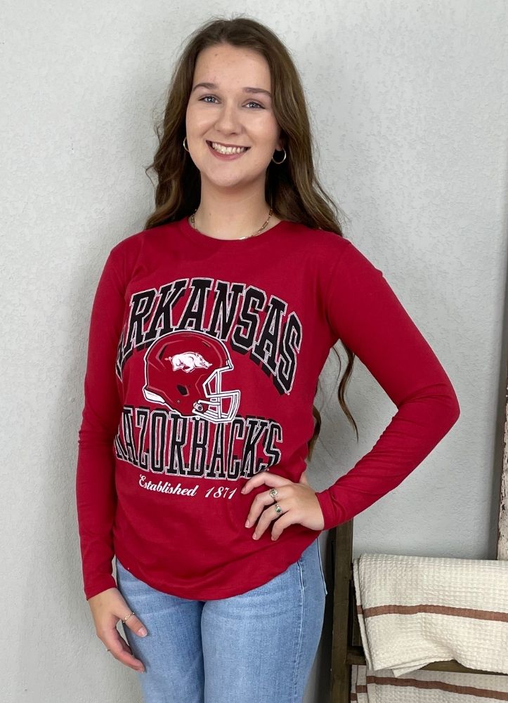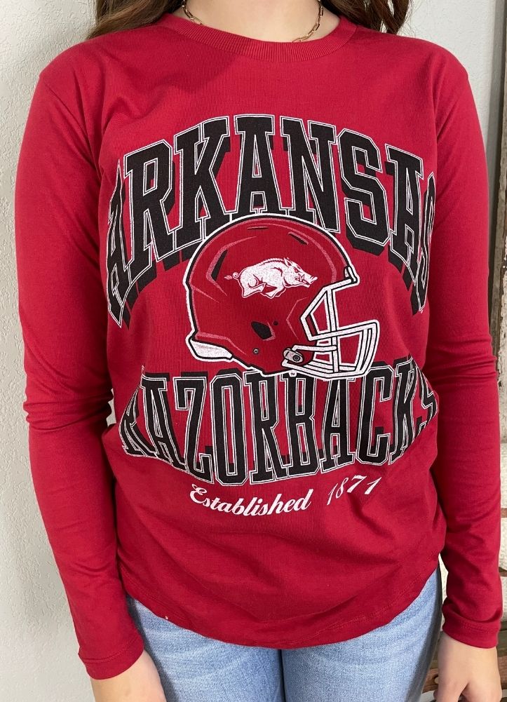 Call the Hogs with this long sleeve tee from Pressbox. Featuring a slightly rounded bottom hem, long sleeves, and a crew neck. This so soft lightweight tee is perfect for football season.