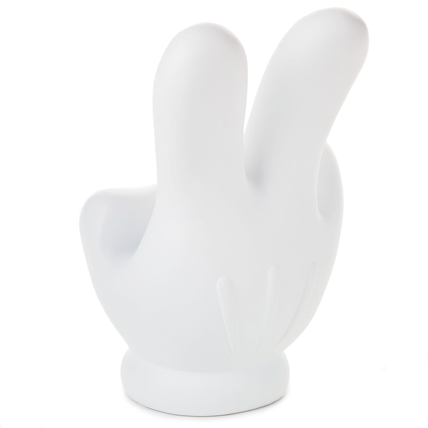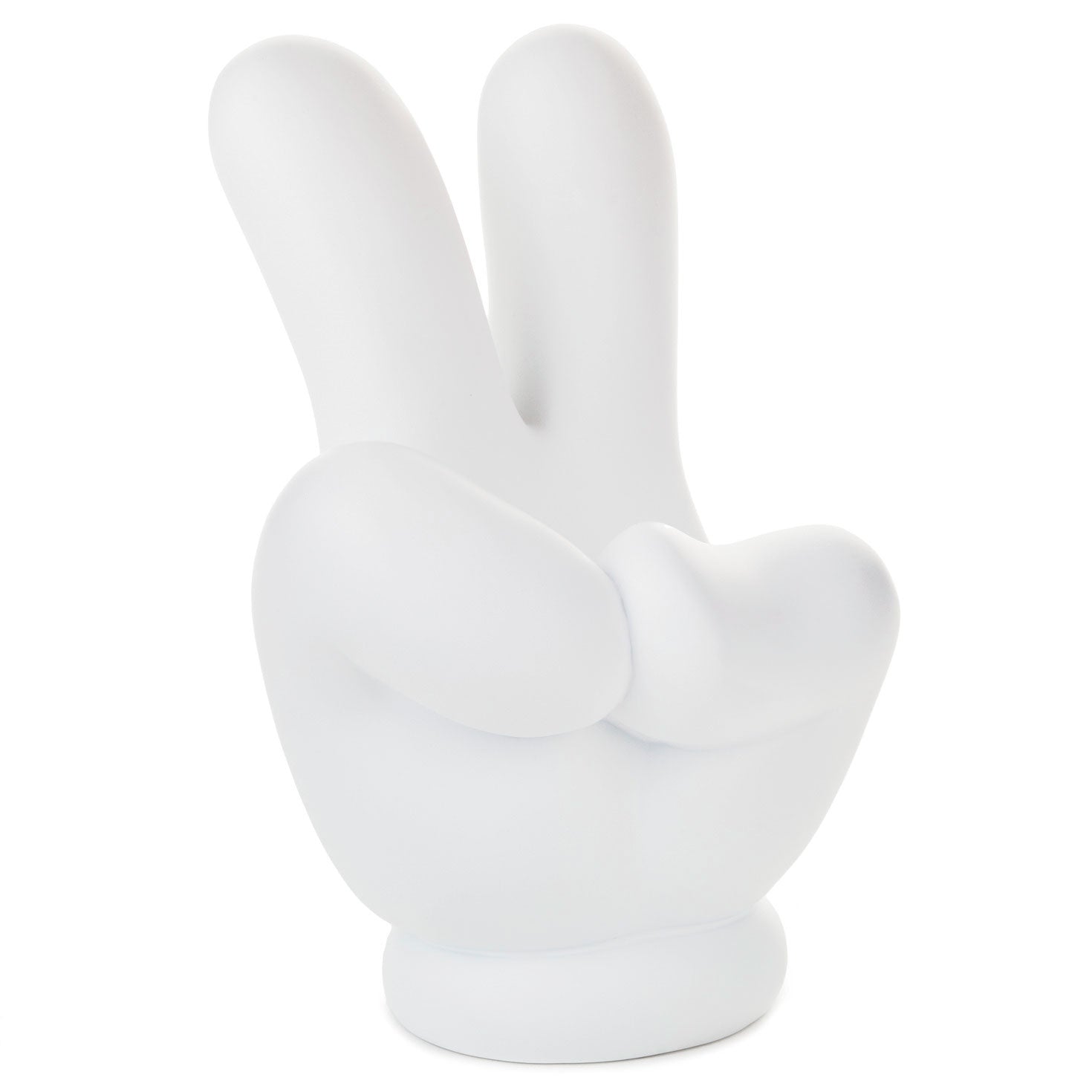 Let Mickey Mouse spread peace and organization to your life. This resin piece features the beloved Disney pal's iconic, white-gloved hand making a peace symbol that doubles as a cell phone stand. Mickey fans will love to prop their phone in the playful tech holder for easy viewing and storage at work or in a home office.