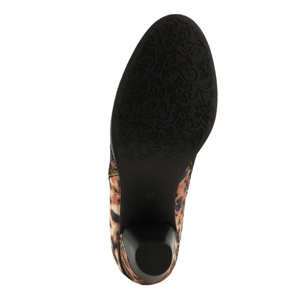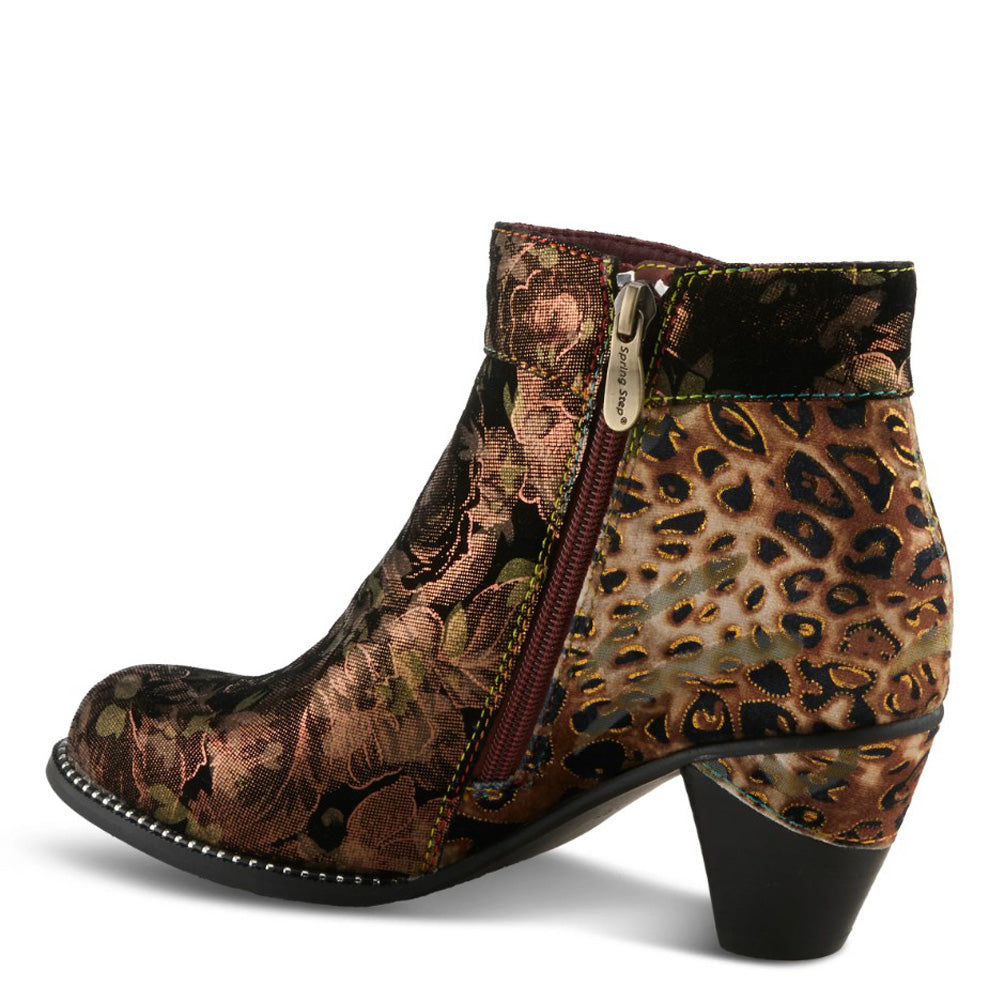 Make a bold style statement with the Dessalynn Bronze Floral Ankle Boot. There vintage inspired design meets modern flair. Featuring a stunning floral and abstract tapestry print in rich bronze, gold, and earthy tones, this boot adds an instant pop of personality to any outfit. The textured fabric finish, decorative button detail, and contrasting heel pattern create a look that's both artistic and elegant.
