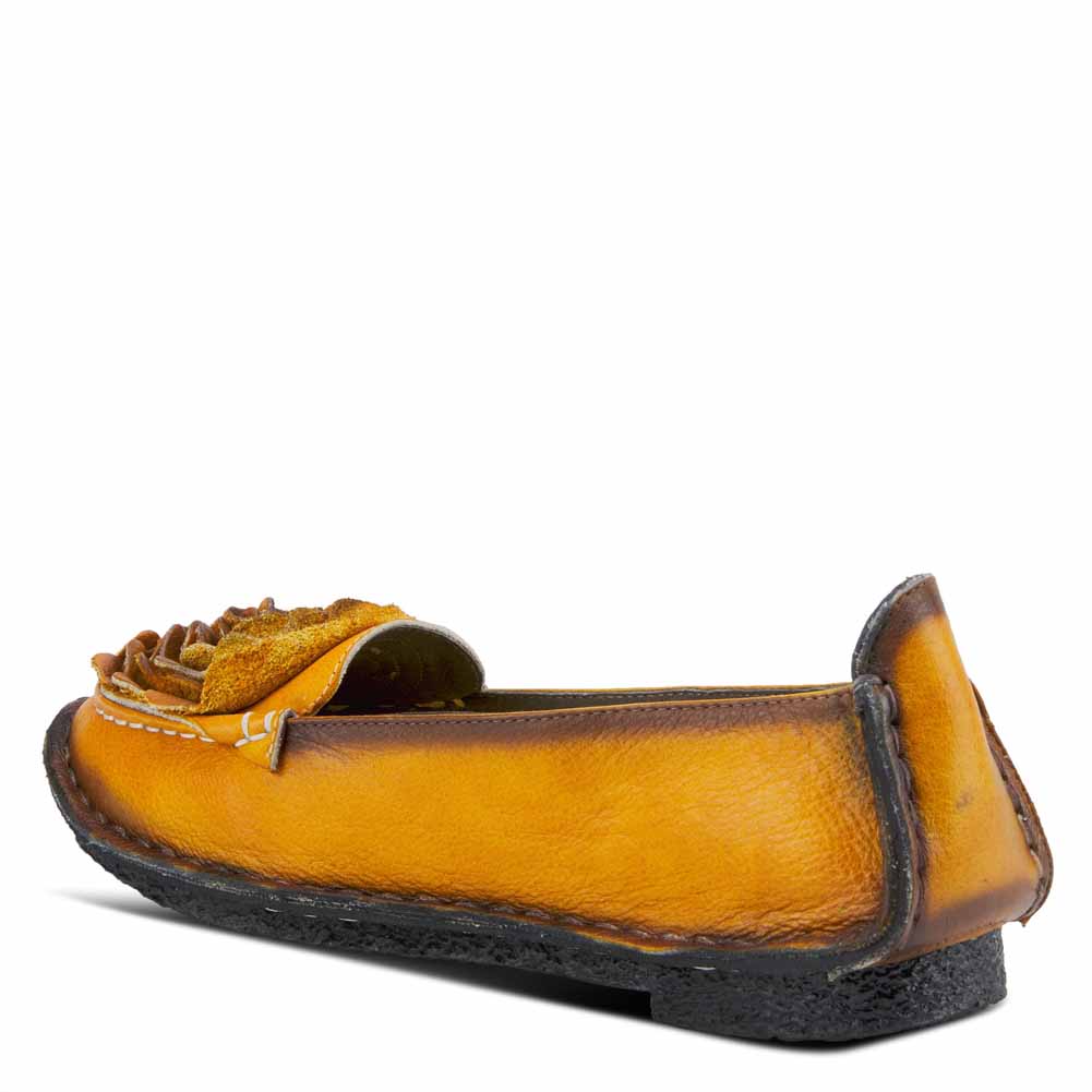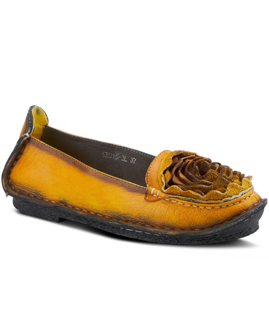 L'Artiste has brought us this new Dezi shoe in the color yellow. The toe of the shoe is made to look like a flower to give it extra character! This shoe also has a higher heel to keep your foot in place.