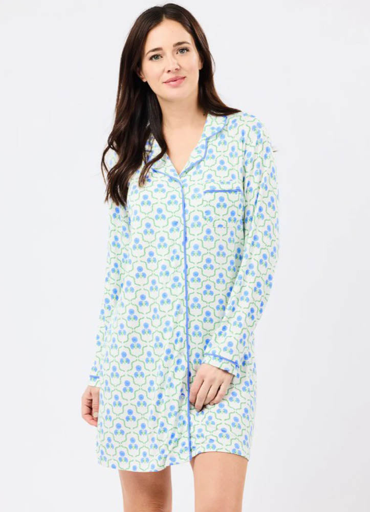 Charlotte Sweetbriar Lattice Blue Nightshirt by Mary Square