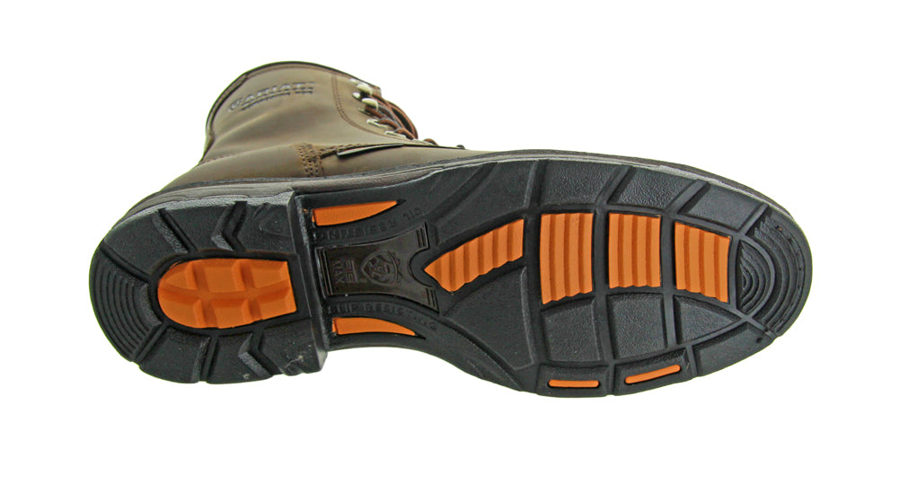 These Workhog 8" Oilly Distress Brn CT WP by Ariat work boots feature Waterproof Pro technology which shuts out rain, snow, and mud, Ariat ATS platform which provides foot support, a cushioning EVA midsole, and also has an oil and slip resistant outsole.