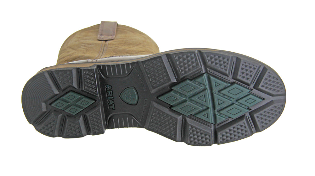 These Groundbreaker Pull-on Brown by Ariat work boots feature support and cushioning for everyday use, oil and slip resistant outsole, extra comfort insole, full grain leather, premium leather upper, mesh lining, a steel toe, rounded toe shape, and a two row stitch pattern.
