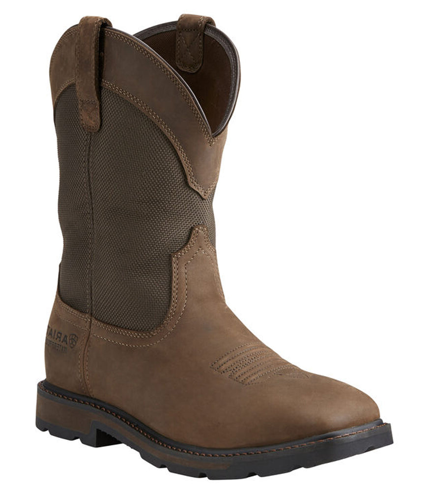 These Groundbreaker Square Toe in Brown by Ariat feature cushioning for everyday use, oil and slip resistant outsole, extra comfort insole, mesh lining, a steel toe, and wide square toe shape.