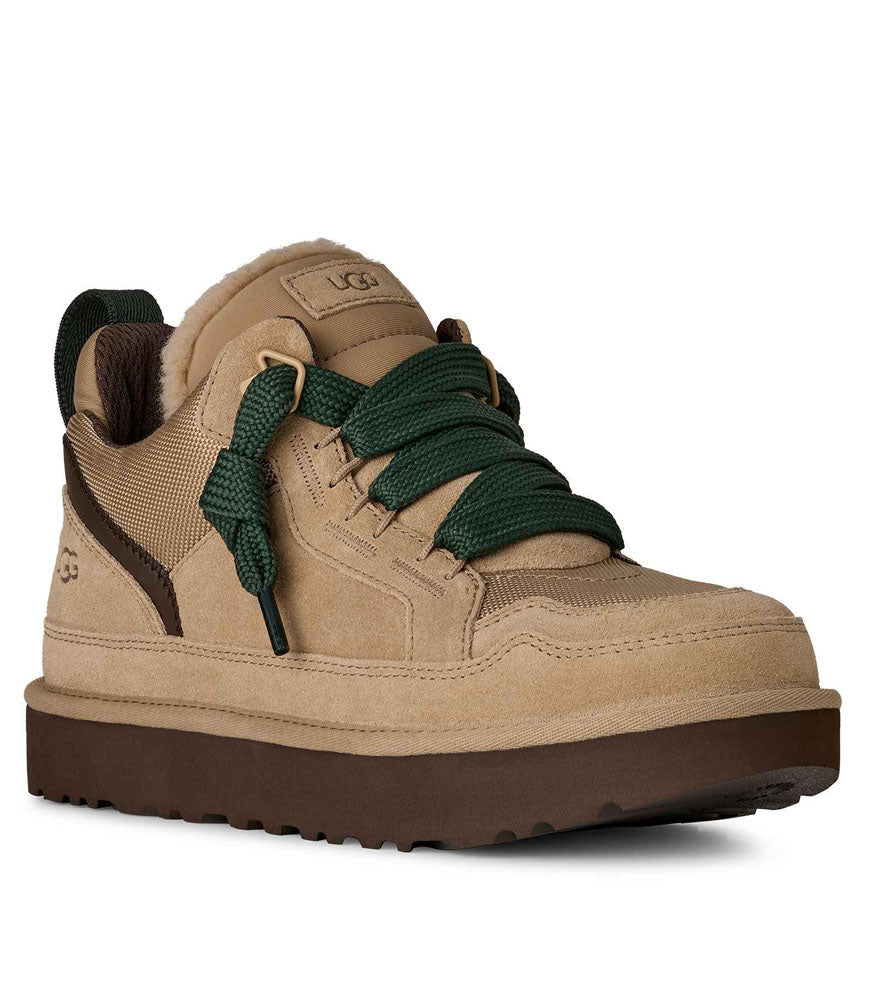 Blending rugged design with everyday comfort, this UGG platform sneaker features a mix of soft suede and durable textile panels, bold contrast laces, and a cushioned elevated sole for all-day support. Cozy lining adds warmth, while the sturdy silhouette makes it perfect for casual wear, cooler days, and effortless off-duty style.