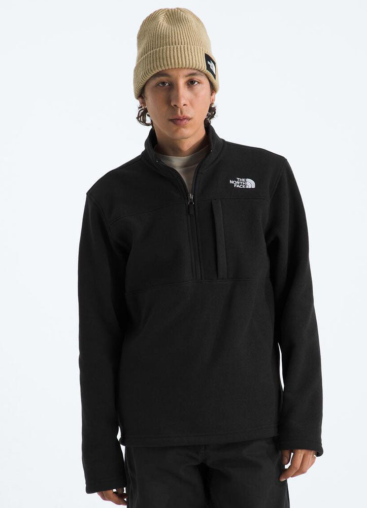 Stay warm and stylish with The North Face fleece pullover, built for everyday wear and outdoor adventures. Crafted from ultra soft fleece, this versatile black quarter zip delivers lightweight warmth without sacrificing comfort. The high collar and half zip closure provide adjustable coverage, while the secure chest pocket keeps essentials close at hand. Designed with a clean, minimalist look and finished with The North Face logo on the chest, this piece pairs easily with any outfit. Whether layered under a jacket or worn on its own, it's the perfect go to for chilly days, combining durability, function, and timeless outdoor style.