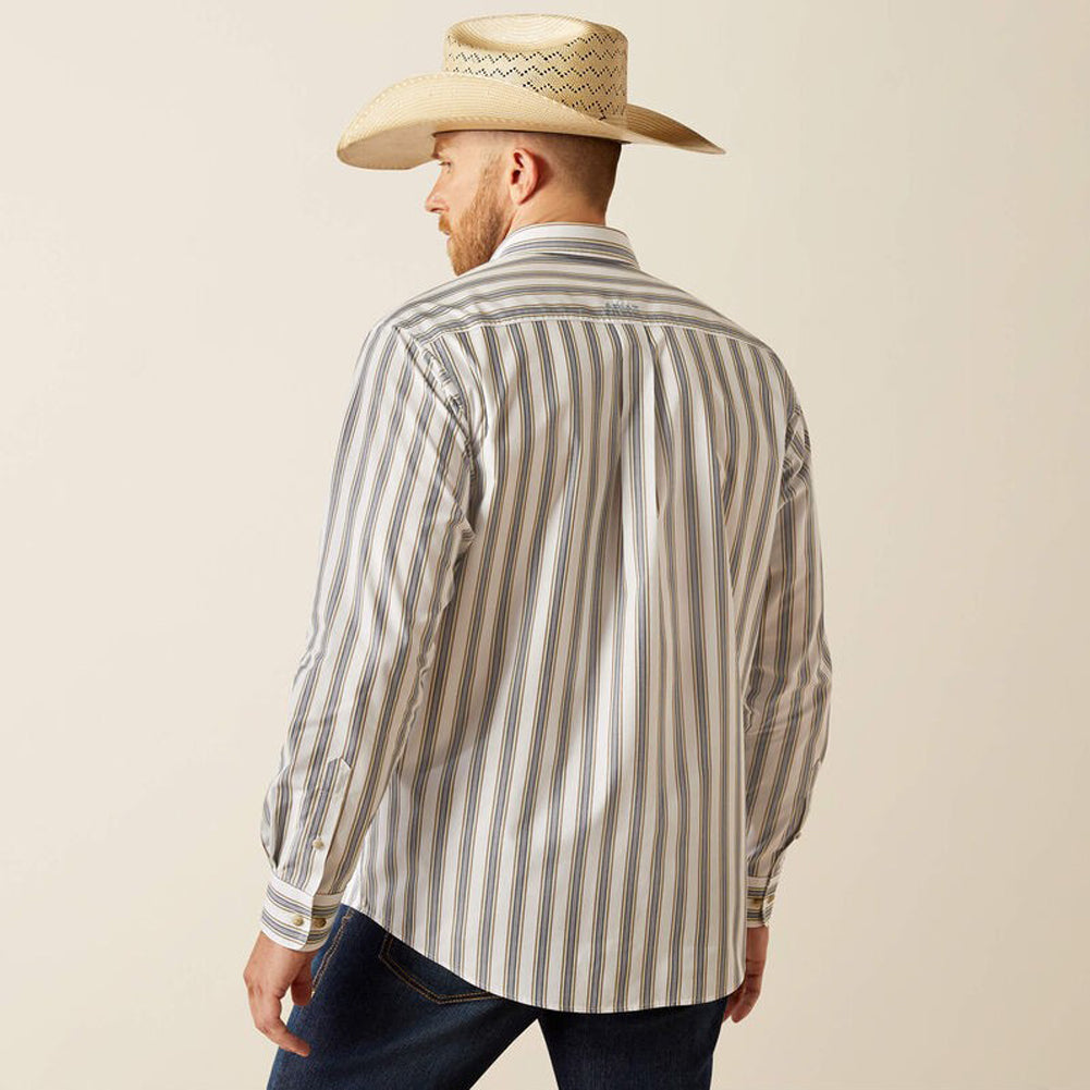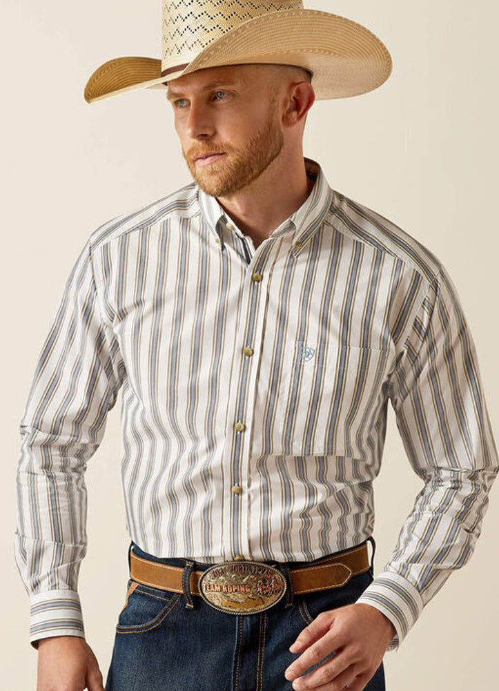 Classic western style meets all-day performance in this Cinch striped button-down. Featuring bold vertical lines in neutral tones, this shirt adds a sharp finish to any cowboy's wardrobe.